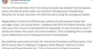 ನ್ಯೂಸ್ ದೇವೇಗೌಡರ ಶಾಪವನ್ನು ಆಶೀರ್ವಾದವಾಗಿ ಸ್ವೀಕಾರ -ಸಿಎಂ ಸಿದ್ದರಾಮಯ್ಯ ಬೆಂಗಳೂರು: ವಯಸ್ಸಿನಲ್ಲಿ ಹಿರಿಯರಾದ ದೇವೇಗೌಡರ ಶಾಪವನ್ನು ಆಶೀರ್ವಾದ ಎಂದು ಸ್ವೀಕರಿಸುತ್ತೇನೆ ಎಂದು ಮುಖ್ಯ ಮಂತ್ರಿ ಸಿದ್ದರಾಮಯ್ಯ...