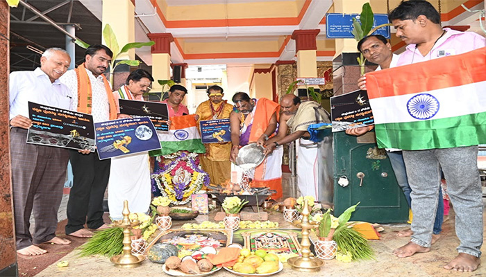 ಮೈಸೂರು: ಮೈಸೂರು ನಗರ ಮತ್ತು ಜಿಲ್ಲಾ ಬ್ರಾಹ್ಮಣ ಸಂಘಟನೆ ಹಾಗೂ ಅರ್ಚಕರ ಸಂಘದ ವತಿಯಿಂದ ಚಂದ್ರನ ಕಕ್ಷೆಗೆ ತೆರಳಿರುವ ವಿಕ್ರಂ ಲ್ಯಾಂಡರ್ ಯಶಸ್ವಿಗೆ ಸರ್ವಸಿದ್ಧಿ ಯಾಗವನ್ನು ನೆರವೇರಿಸಲಾಯಿತು.