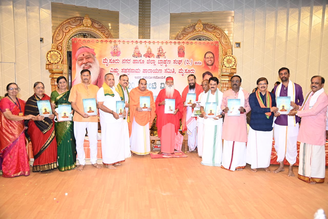 ಅವಧೂತ್ತ ದತ್ತಪೀಠದ ನಾದ ಮಂಟಪದಲ್ಲಿ ಭಾನುವಾರ ಮೈಸೂರು ನಗರ ಹಾಗೂ ಜಿಲ್ಲಾ ಬ್ರಾಹ್ಮಣ ಸಂಘ ಮತ್ತು ಕೋಟಿ ವಿಷ್ಣು ಸಹಸ್ರನಾಮ ಪಾರಾಯಣ ಸಮಿತಿ ಹಮ್ಮಿಕೊಂಡಿದ್ದ 20 ಕೋಟಿ ವಿಷ್ಣು ಸಹಸ್ರನಾಮ ಸಮರ್ಪಣ ಕಾರ್ಯಕ್ರಮದ ದಿವ್ಯ ಸಾನಿಧ್ಯ ವಹಿಸಿ ಭಕ್ತರಿಗೆ ಆಶೀರ್ವಚನ ನೀಡಿ ಶ್ರೀಗಳು ಮಾತನಾಡಿದರು.
