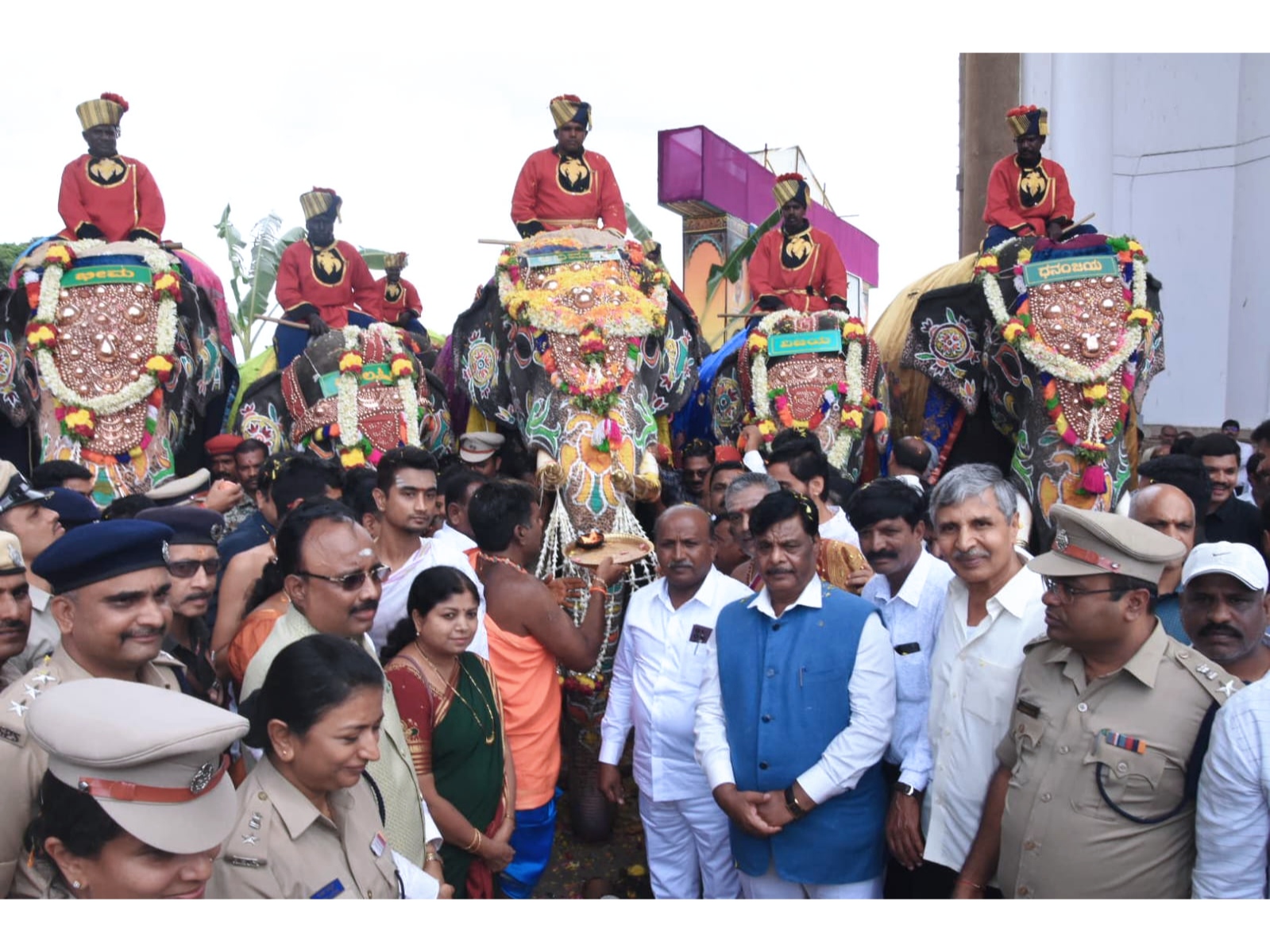 ತುಂಬಿದ್ದ ಜನಸಾಗರದ ಮಧ್ಯೆ ಅಭಿಮನ್ಯು ನೇತೃತ್ವದ ಗಜಪಡೆ ರಾಜಗಾಂಭೀರ್ಯದಿಂದ ಹೆಜ್ಜೆ ಹಾಕುತ್ತಾ ಆಗಮಿಸಿದವು.