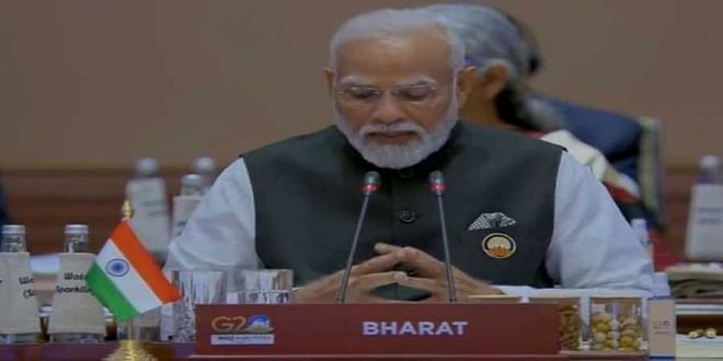 ನವದೆಹಲಿಯ ಪ್ರಗತಿ ಮೈದಾನ್ ಅವರಣದ ಭಾರತ್ ಮಂಟಪಂನಲ್ಲಿ ಜಿ20 ಶೃಂಗಸಭೆಯನ್ನು ಉದ್ಘಾಟಿಸಿ ಮಾತನಾಡಿದ ಪ್ರಧಾನಿ, ಭಾರತದ ಸಬ್ ಕಾ ಸಾಥ್, ಸಬ್ ಕಾ ವಿಕಾಸ್, ಸಬ್ ಕಾ ವಿಶ್ವಾಸ್, ಸಬ್ ಕಾ ಪ್ರಾಯಸ್ ಎಂಬ ಕಲ್ಪನೆಯು ಜಗತ್ತಿಗೆ ಮಾರ್ಗದರ್ಶಿಯಾಗಬಹುದು ಎಂದು ಆಶಿಸಿದರು.