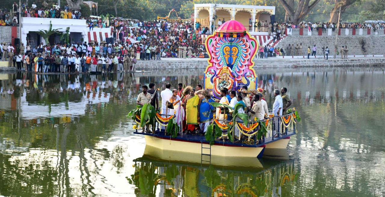 ಈ ಬಾರಿ ಚಂದ್ರಗ್ರಹಣ ಹಿನ್ನೆಲೆಯಲ್ಲಿ ರಾತ್ರಿ ಸಮಯದಲ್ಲಿ ನಡೆಯಬೇಕಿದ್ದ ತೆಪ್ಪೋತ್ಸವ ಸಂಜೆ 5 ಗಂಟೆಗೆ ನೆರವೇರಿಸಲಾಯಿತು.
