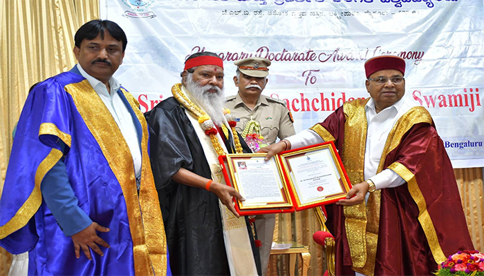 ಕರ್ನಾಟಕ ರಾಜ್ಯ ಡಾ.ಗಂಗೂಬಾಯಿ ಹಾನಗಲ್ ಸಂಗೀತ ಮತ್ತು ಪ್ರದರ್ಶಕ ಕಲೆಗಳ ವಿಶ್ವವಿದ್ಯಾಲಯ ಶಿಕ್ಷಣ, ಕಲೆ, ಸಂಗೀತ ಮತ್ತು ಸಾಹಿತ್ಯ ಮತ್ತು ಸಾಮಾಜಿಕ ಕ್ಷೇತ್ರಗಳಲ್ಲಿ ಅತ್ಯುತ್ತಮ ಕೆಲಸ ಮಾಡಿದ ಮಹನೀಯರಿಗೆ ಗೌರವ ಡಾಕ್ಟರೇಟ್ ಪದವಿ ನೀಡಿ ಗೌರವಿಸಿದೆ. ಅದರಂತೆ ಈ ದಿನ ಸಂಗೀತ ಕ್ಷೇತ್ರದಲ್ಲಿ ಸಾಧನೆ ಮಾಡಿರುವ ಪೂಜ್ಯ ಶ್ರೀ ಸಚ್ಚಿದಾನಂದ ಸ್ವಾಮೀಜಿ ಅವರಿಗೆ ಗೌರವ ಡಾಕ್ಟರೇಟ್ ಪ್ರದಾನ ಮಾಡಿರುವುದು ಧನ್ಯತಾ ಭಾವವನ್ನು ತುಂಬಿದೆ ಎಂದರು.