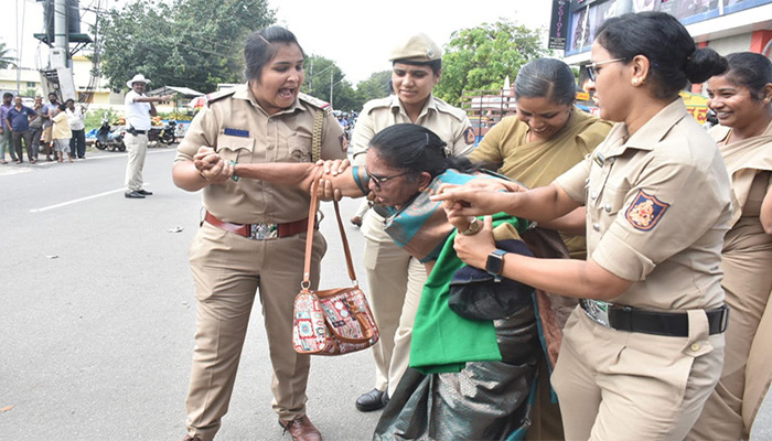 ಮಹಿಳೆಯರೂ ಸೇರಿದಂತೆ ಹಲವು ರೈತರನ್ನು ಪೊಲೀಸರು ವಶಕ್ಕೆ ಪಡೆದಿದ್ದಾರೆ.