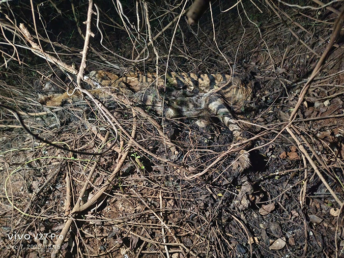 ಚಾಮರಾಜನಗರ: ಹುಲಿ ಹಾಗೂ ಹುಲಿ ಮರಿಯ ಕಳೇಬರಗಳು ಚಾಮರಾಜನಗರ ತಾಲೂಕಿನ ಕೊತ್ತಲವಾಡಿ ಗ್ರಾಮದ ಬೀಳುಬಿದ್ದ ಕಂದಾಯ ಇಲಾಖೆ ಜಮೀನಿನ ಪೊದೆಯಲ್ಲಿ ಪತ್ತೆಯಾಗಿದೆ.