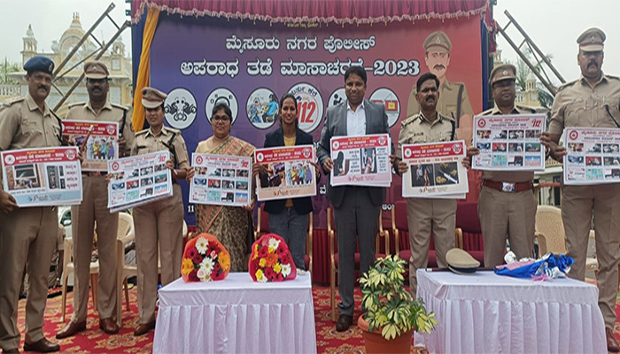 ಮೈಸೂರಿನ ಕೋಟೆ ಆಂಜನೇಯ ಸ್ವಾಮಿ ದೇವಸ್ಥಾನದ ಬಳಿ ಸೋಮವಾರ ಬೆಳಿಗ್ಗೆ ಪೊಲೀಸ್ ಆಯುಕ್ತರು ಅಪರಾಧ ತಡೆ ಮಾಸಾಚರಣೆ ಕಾರ್ಯಕ್ರಮದಲ್ಲಿ ಮಾತನಾಡಿದರು.