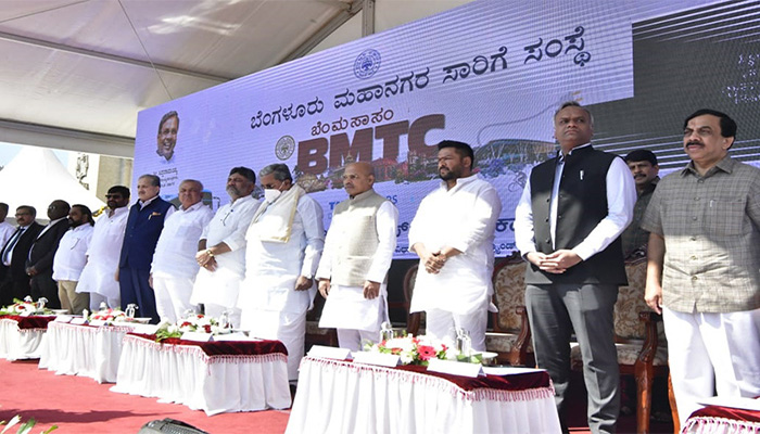 ವಿಧಾನಸೌಧದ ಪೂರ್ವದ್ವಾರದ ಮುಂಭಾಗದಲ್ಲಿ ಬೆಂಗಳೂರು ಮಹಾನಗರ ಸಾರಿಗೆ ಸಂಸ್ಥೆ ಆಯೋಜಿಸಿದ್ದ ಕಾರ್ಯಕ್ರಮದಲ್ಲಿ 100 ವಿದ್ಯುತ್ ಚಾಲಿತ ಬಸ್ ಗಳನ್ನು ಉದ್ಘಾಟಿಸಿ ಸಿಎಂ ಮಾತನಾಡಿದರು.