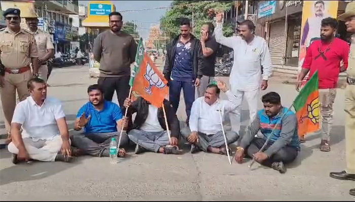 ಈ ವೇಳೆ ಆಕ್ರೋಶಗೊಂದ ಬಿಜೆಪಿ ಕಾರ್ಯಕರ್ತರು ಪ್ರತಿಭಟನೆ ನಡೆಸಿದರು.