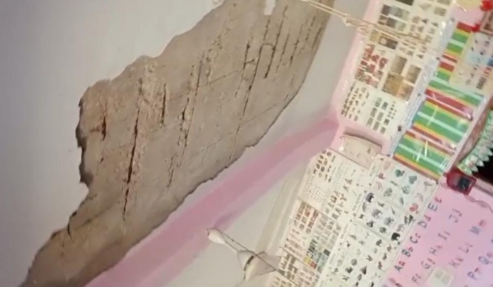 ಚಾಮರಾಜನಗರದ ಬಂಡಿಗೆರೆ ಗ್ರಾಮದಲ್ಲಿರುವ ಅಂಗನವಾಡಿ ಕಟ್ಟಡದ ಛಾವಣಿ ಇದ್ದಕ್ಕಿದ್ದಂತೆ ಕುಸಿದು ಗಾರೆ ಮಕ್ಕಳ ಮೇಲೆ ಬಿದ್ದಿದೆ.