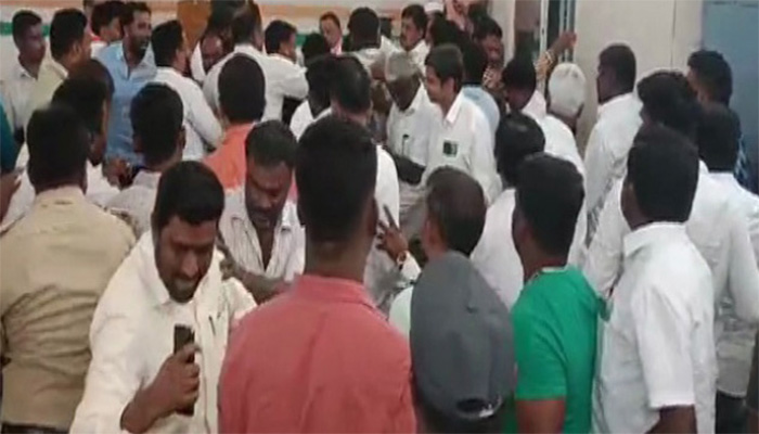 ಕಾಂಗ್ರೆಸ್ ಕಚೇರಿಯಲ್ಲಿ ಶಾಸಕ ಕೊತ್ತೂರು ಮಂಜುನಾಥ್ ಬೆಂಬಲಿಗರು ಮತ್ತು ಕೆ.ಎಚ್.ಮುನಿಯಪ್ಪ ಬೆಂಬಲಿಗರು ಕೈ,ಕೈ ಮಿಲಾಯಿಸಿದ್ದಾರೆ.