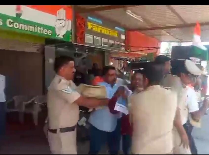 ಕಾಂಗ್ರೆಸ್ ಕಚೇರಿ ಮುತ್ತಿಗೆ ಹಾಕಲು ತೆರಳುತ್ತಿದ್ದಂತೆ 20ಕ್ಕೂ ಹೆಚ್ಚು ಕಾರ್ಯಕರ್ತರನ್ನು ಪೊಲೀಸರು ವಶಕ್ಕೆ ಪಡೆದರು.