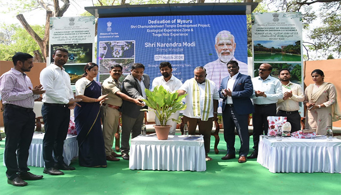 ಗುರುವಾರ ಶ್ರೀ ಚಾಮುಂಡೇಶ್ವರಿ ದೇವಿ ದೇವಸ್ಥಾನ ಅಭಿವೃದ್ಧಿ, ಇಕೋಲಾಜಿಕಲ್ ಎಕ್ಸ್ಪೀರಿಯನ್ಸ್ ಜೋನ್, ಟಾಂಗ ರೈಡ್ ಹೆರಿಟೇಜ್ ಎಕ್ಸ್ಪೀರಿಯನ್ಸ್ ಸೇರಿದಂತೆ ಅನೇಕ ಕಾಮಗಾರಿಗಳಿಗೆ ಮೈಸೂರಿನ ಚಾಮರಾಜೇಂದ್ರ ಮೃಗಾಲಯದ ಆಂಪಿ ಥಿಯೇಟರ್ ನಲ್ಲಿ ಪ್ರಧಾನಿ ನರೇಂದ್ರ ಮೋದಿ ಅವರು ವಿಡಿಯೋ ವರ್ಚುವಲ್ ಮೂಲಕ ಶಂಕುಸ್ಥಾಪನೆ ನೆರವೇರಿಸಿದರು.