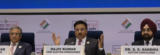 ಇಂದು ದೆಹಲಿಯ ವಿಜ್ಞಾನಭವನದಲ್ಲಿ ಹೊಸದಾಗಿ ನೇಮಕಗೊಂಡ ಚುನಾವಣಾ ಆಯುಕ್ತರಾದ ಜ್ಞಾನೇಶ್ ಕುಮಾರ್ ಮತ್ತು ಸುಖಬೀರ್ ಸಿಂಗ್ ಸಂಧು ಅವರೊಂದಿಗೆ ಜಂಟಿ ಸುದ್ದಿಗೋಷ್ಠಿಯಲ್ಲಿ ಮುಖ್ಯ ಚುನಾವಣಾ ಆಯುಕ್ತ ರಾಜೀವ್ ಕುಮಾರ್ ಅವರು ಚುನಾವಣೆ ಬಗ್ಗೆ ಮಾಹಿತಿ ನೀಡಿದರು.