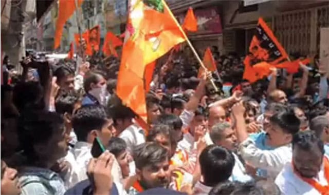 ಘಟನೆಗೆ ಖಂಡನೆ ವ್ಯಕ್ತಪಡಿಸಿರುವ ಹಿಂದೂಪರ ಸಂಘಟನೆಗಳು ಇಂದು ಹಲ್ಲೆಗೊಳಗಾದ ಯುವಕ ಮುಖೇಶ್ ಅಂಗಡಿಯಿಂದ ಭಾಗವಧ್ವಜದೊಂದಿಗೆ ಹನುಮಾನ್ ಚಾಲೀಸ ಪಠಣ ಮಾಡಿಕೊಂಡು ಶಾಂತಿಯುತ ಮೆರವಣಿಗೆ ಹಮ್ಮಿಕೊಂಡರು.
