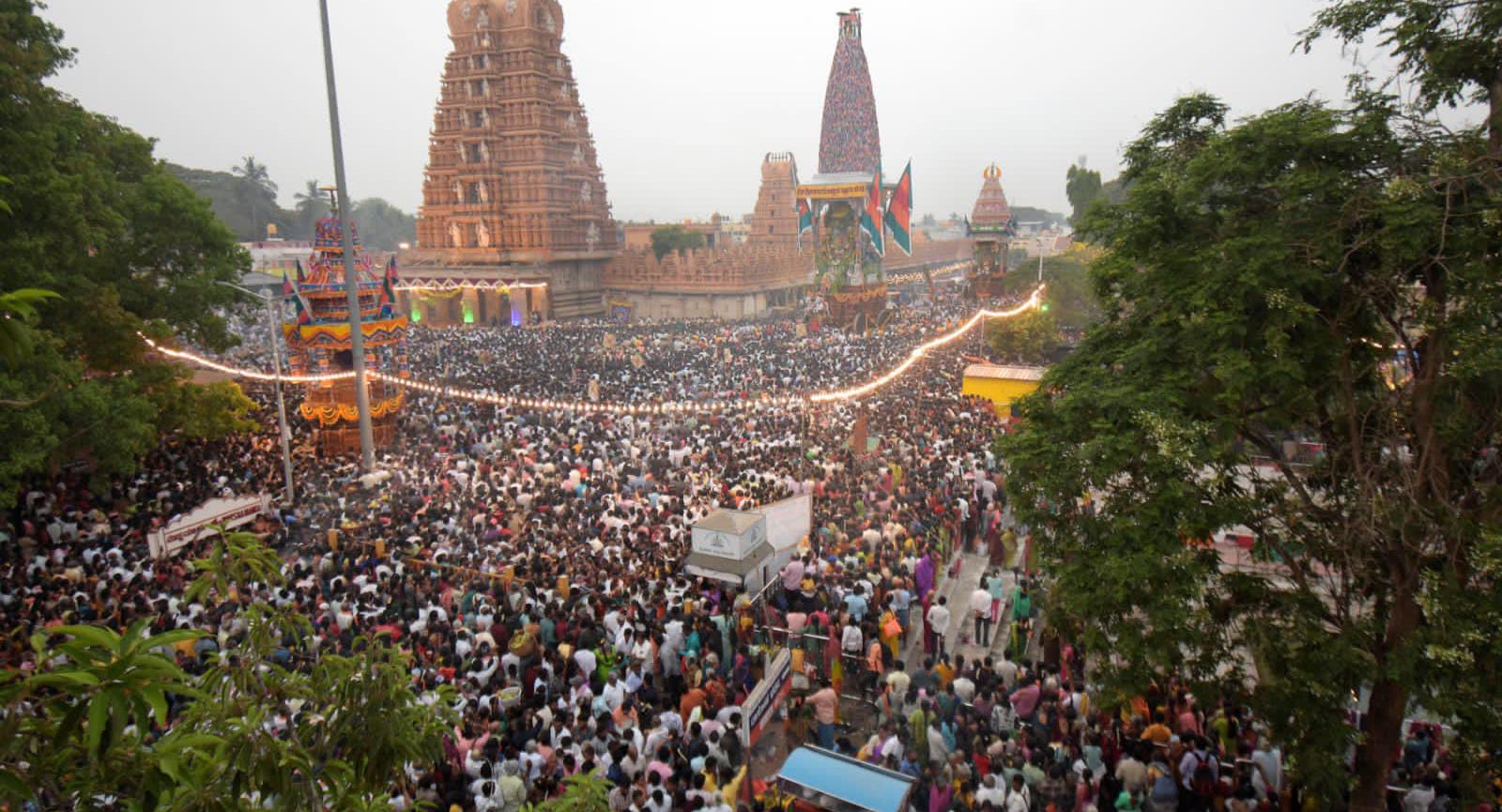 ರಥ ಬೀದಿಯಲ್ಲಿ ಸಾಗಿದ ನೂರಾರು ಟನ್ ತೂಕದ ಬೃಹತ್ ರಥದಲ್ಲಿ ನಂಜುಂಡೇಶ್ವರ ಉತ್ಸವ ಮೂರ್ತಿ ರಾರಾಜಿಸಿತು