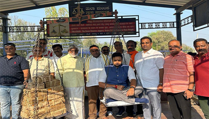 ಮೊದಲು ಗೋವುಗಳಿಗೆ ಪೂಜೆ ಸಲ್ಲಿಸಿ ನಂತರ ತುಲಾಭಾರ ಮಾಡುವ ಮೂಲಕ ಯದುವೀರ್ ಅವರ ಹುಟ್ಟು ಹಬ್ಬ ಆಚರಿಸಿದರು.