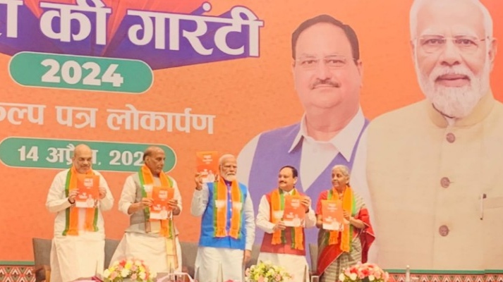 ಪ್ರಧಾನಿ ನರೇಂದ್ರ ಮೋದಿ ಸೇರಿದಂತೆ ಪಕ್ಷದ ಹಿರಿಯ ನಾಯಕರು ಪ್ರಣಾಳಿಕೆ ಬಿಡುಗಡೆ ಮಾಡಿದರು.