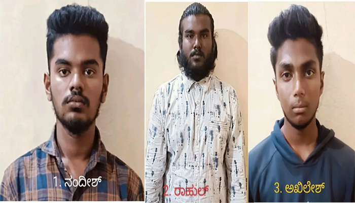 ಮೈಸೂರು ತಾಲೂಕಿನ ಕಾಮನಕೆರೆ ಹುಂಡಿಯ ರಾಹುಲ್(20), ಬೆಳವಾಡಿಯ ಅಖಿಲೇಶ್(19) ಹೂಟಗಳ್ಳಿಯ ನಂದೀಶ್(19) ಬಂಧಿತ ಆರೋಪಿಗಳು.