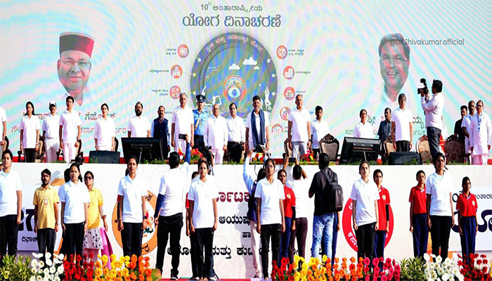 ಬೆಂಗಳೂರು: ರಾಜ್ಯ ಸರ್ಕಾರದ ವತಿಯಿಂದ ವಿಧಾನಸೌಧದ ಎದುರು ಆಯೋಜಿಸಿದ್ದ ʻಯೋಗೋತ್ಸವʼ ಕಾರ್ಯಕ್ರಮದಲ್ಲಿ 10ನೇ ಅಂತಾರಾಷ್ಟ್ರೀಯ ಯೋಗ ದಿನವನ್ನು ಆಚರಿಸಲಾಯಿತು.