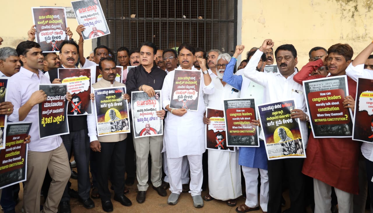ಸ್ವಾತಂತ್ರ್ಯ ಉದ್ಯಾನದಲ್ಲಿ ಬಿಜೆಪಿ ತುರ್ತು ಪರಿಸ್ಥಿತಿ ಸಂಬಂಧ ರಾಹುಲ್ ಗಾಂಧಿ ಕ್ಷಮೆ ಕೋರಬೇಕೆಂಬ ಆಗ್ರಹದ ಪೋಸ್ಟರ್ ಅಭಿಯಾನದ ವೇಳೆ ಅವರು ಮಾತನಾಡಿದರು.
