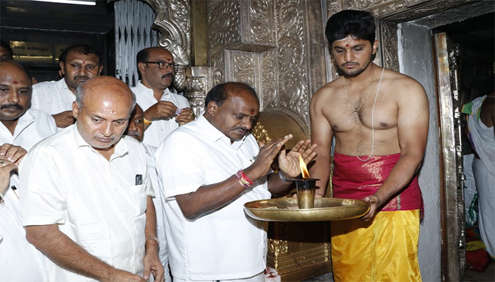 ಕೇಂದ್ರ ಸಚಿವರಾದ ಬಳಿಕ ಮೊದಲ ಬಾರಿಗೆ ಮೈಸೂರಿಗೆ ಆಗಮಿಸಿದ ಕುಮಾರಸ್ವಾಮಿ ಇಂದು ಚಾಮುಂಡಿ ಬೆಟ್ಟಕ್ಕೆ ತೆರಳಿ ದೇವಿಗೆ ವಿಶೇಷ ಪೂಜೆ ಸಲ್ಲಿಸಿದರು.