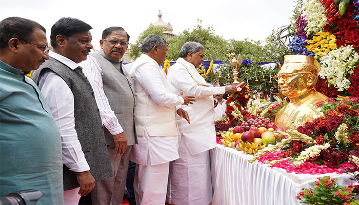 ಡಾ.ಬಾಬು ಜಗಜೀವನ ರಾಂ ಪುಣ್ಯತಿಥಿ ಅಂಗವಾಗಿ ವಿಧಾನಸೌಧದ ಪಶ್ಚಿಮ ದ್ವಾರದ ಬಳಿ ಅವರ ಪ್ರತಿಮೆಗೆ ಪುಷ್ಪ ನಮನ ಸಲ್ಲಿಸಿ ಮಾಧ್ಯಮಗಳೊಂದಿಗೆ ಮಾತನಾಡಿದರು.