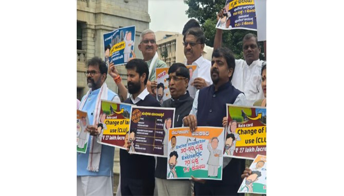 ನಗರಾಭಿವೃದ್ಧಿ ಇಲಾಖೆಯಲ್ಲಿ ಚದರಡಿಗೆ 100 ರೂ. ಕೊಡಬೇಕು. ಭೂ ಪರಿವರ್ತನೆಗೆ ಎಕರೆಗೆ 27 ಲಕ್ಷ ರೂ. ಫಿಕ್ಸ್, ಪೊಲೀಸ್ ಇನ್ಸ್ಪೆಕ್ಟರ್ ವರ್ಗಾವಣೆಗೆ 50 ಲಕ್ಷದಿಂದ 1 ಕೋಟಿ ರೂ., ಎಇ 50 ಲಕ್ಷದಿಂದ 75 ಲಕ್ಷ. ತಹಶಿಲ್ದಾರ್ 50 ಲಕ್ಷದಿಂದ 1 ಕೋಟಿ ರೂ. ಬೆಂಗಳೂರು ಎಸಿ 5 ಕೋಟಿ ರೂ. ಎಸಿಪಿ 1.5 ಕೋಟಿಯಿಂದ 2 ಕೋಟಿ. ಎಇ 20-25 ಲಕ್ಷ ಎಂದು ಫಿಕ್ಸ್ ಮಾಡಲಾಗಿದೆ ಎಂದು ಗಂಭೀರ ಆರೋಪ ಮಾಡಿದರು ಸಿ.ಟಿ.ರವಿ.
