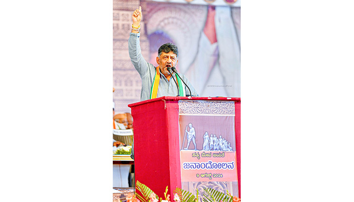 ಮೈಸೂರಿನ ಮಹಾರಾಜ ಕಾಲೇಜು ಮೈದಾನದಲ್ಲಿ ನಡೆದ ಜನಾಂದೋಲನ ಸಭೆಯಲ್ಲಿ ಮಾತನಾಡಿದ ಅವರು, ಏ ಕುಮಾರಸ್ವಾಮಿ, ಏ ಅಶೋಕಾ, ಏ ವಿಜಯೇಂದ್ರ ನಿಮಗೆ ಸಿದ್ದರಾಮಯ್ಯನವರ ರಾಜೀನಾಮೆ ಬೇಕಾ ಎಂದು ಕಾರವಾಗಿ ಪ್ರಶ್ನಿಸಿದರು.