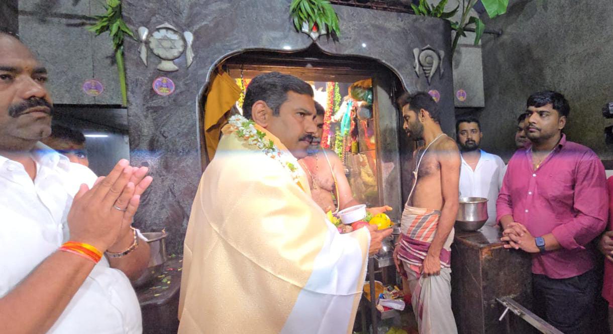 ಆಂಜನೇಯ ಸ್ವಾಮಿಗೆ ಪೂಜೆ ಸಲ್ಲಿಸುವ ವೇಳೆ ಮಾಜಿ ಶಾಸಕ ನಾಗೇಂದ್ರ ಮತ್ತಿತರರು ಉಪಸ್ಥಿತರಿದ್ದರು.