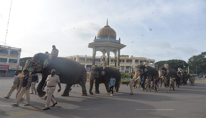 ಕ್ಯಾಪ್ಟನ್ ಅಭಿಮನ್ಯು, ವರಲಕ್ಷ್ಮಿ, ಭೀಮ, ಏಕಲವ್ಯ, ಲಕ್ಷ್ಮಿ, ರೋಹಿತ್, ಗೋಪಿ, ಕಂಜನ್, ಧನಂಜಯ ಆನೆಗಳು ಇಂದು ಬೆಳಿಗ್ಗೆ ಮೈಸೂರು ಅರಮನೆಯಿಂದ ಹೊರಟು ಕೆಆರ್ ಸರ್ಕಲ್, ಆಯುರ್ವೇದ ಆಸ್ಪತ್ರೆ ವೃತ್ತ, ನಂತರ ಬನ್ನಿಮಂಟಪವನ್ನು ತಲುಪಿದವು.