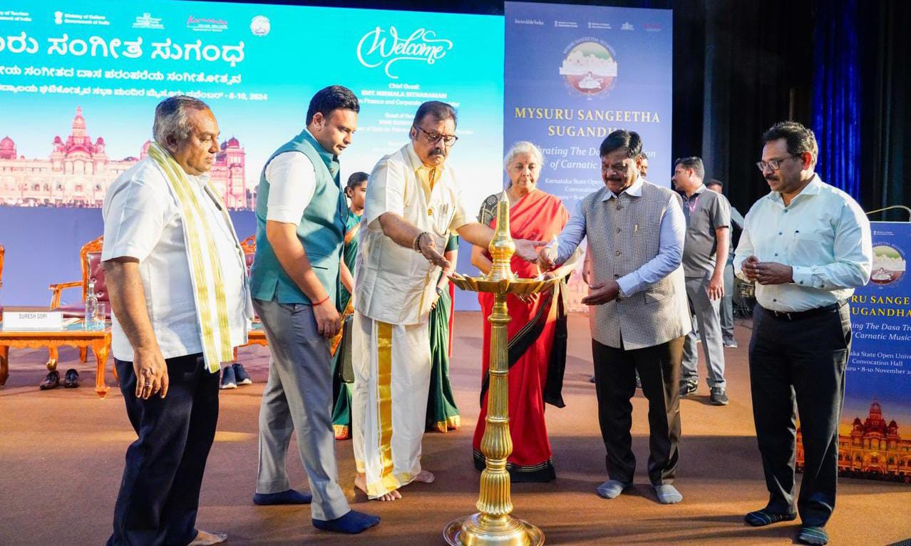 ಮೈಸೂರು: ಸಂಗೀತ ಕ್ಷೇತ್ರಕ್ಕೆ ಮೈಸೂರಿನ ಕೊಡುಗೆ ಅಪಾರ ಎಂದು ಕೇಂದ್ರ ಹಣಕಾಸು ಮತ್ತು ಕಾರ್ಪೋರೇಟ್ ವ್ಯವಹಾರಗಳ ಸಚಿವರಾದ ನಿರ್ಮಲಾ ಸೀತಾರಾಮನ್ ಅವರು ಹೇಳಿದರು.