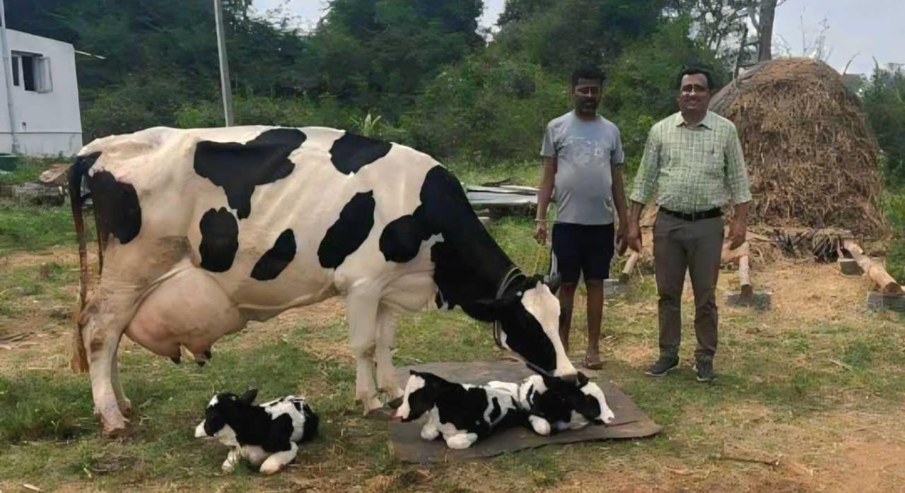 ಮಂಡ್ಯ ಜಿಲ್ಲೆ ಪಾಂಡವಪುರ ತಾಲೂಕಿನ ಡಿಂಕಾ ಗ್ರಾಮದಲ್ಲಿ ಸೀಮೆ ಹಸು ಮೂರು ಹೆಣ್ಣು ಕರುಗಳಿಗೆ ಜನ್ಮ ನೀಡಿದೆ.
