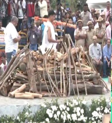 ಚಿತೆಗೆ ಅರಣ್ಯ ಇಲಾಖೆಯಿಂದ 1 ಸಾವಿರ ಕೆಜಿ ಶ್ರೀಗಂಧದ ಕಟ್ಟಿಗೆ ಪೂರೈಸಲಾಗಿತ್ತು. ಬಾಳೆ ಎಲೆಯಲ್ಲಿ ಪಾರ್ಥಿವ ಶರೀರ ಮುಚ್ಚಿ, 50 ಕೆಜಿ ತುಪ್ಪ ಬಳಸಿ ಚಿತೆಗೆ ಅಗ್ನಿಸ್ಪರ್ಶ ಮಾಡಲಾಯಿತು.