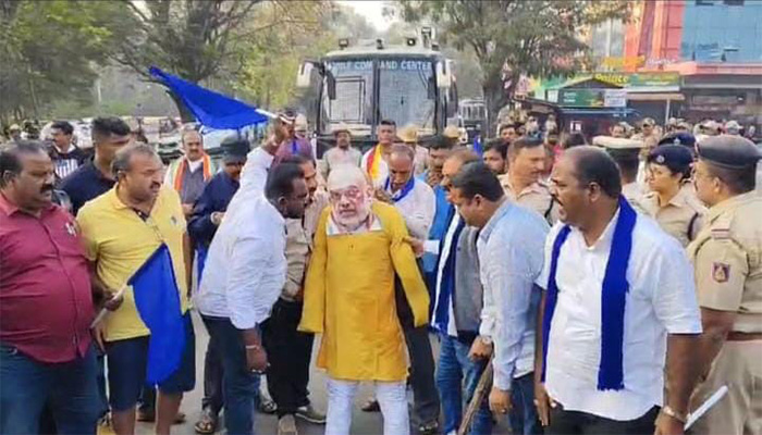ಕೇಂದ್ರ ಸಚಿವ ಅಮಿತ್ ಶಾ ವಿರುದ್ದ ದಿಕ್ಕಾರ ಕೂಗಿ ಆಕ್ರೋಶ ವ್ಯಕ್ತಪಡಿಸಿ, ಅಮಿತ್ ಶಾ ಪ್ರತಿಕೃತಿಯ ಅಣುಕು ಶವಯಾತ್ರೆ ಮಾಡಿ ನಂತರ ಆ ಪ್ರತಿ ಕೃತಿಯನ್ನು ದಹನ ಮಾಡಿದರು.