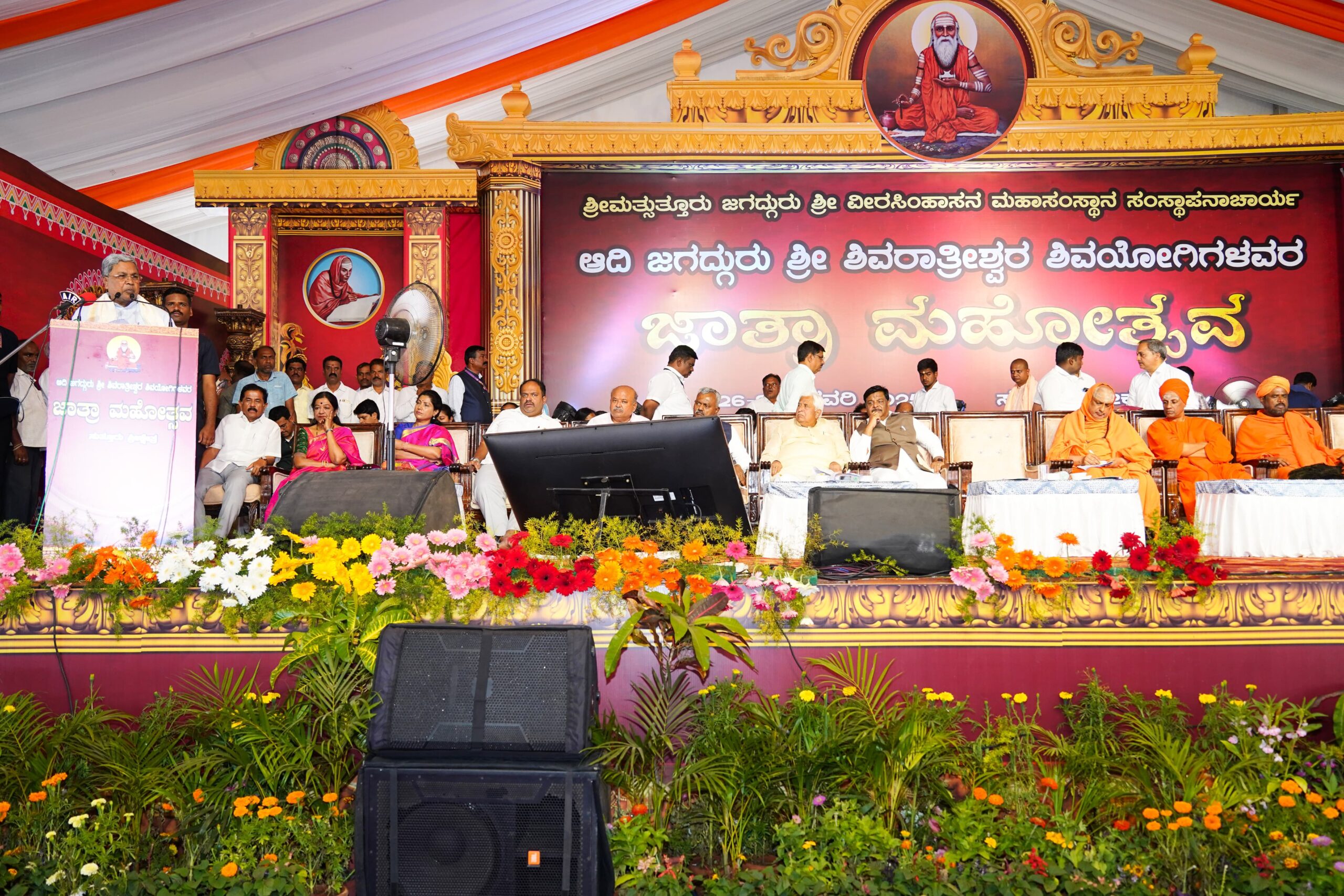 ಸಿಎಂ,ಮೈಸೂರು ಸುತ್ತೂರಿನ ಶಿವರಾತ್ರೀಶ್ವರ ಶಿವಯೋಗಿಗಳ ಜಾತ್ರಾ ಮಹೋತ್ಸವದಲ್ಲಿ ಪಾಲ್ಗೊಂಡು ಮಹದೇಶ್ವರ ದೇವಸ್ಥಾನಕ್ಕೆ ಭೇಟಿ ನೀಡಿ ವಿಶೇಷ ಪೂಜೆ ಸಲ್ಲಿಸಿ ಗದ್ದುಗೆ ದರ್ಶನ ಪಡೆದರು.