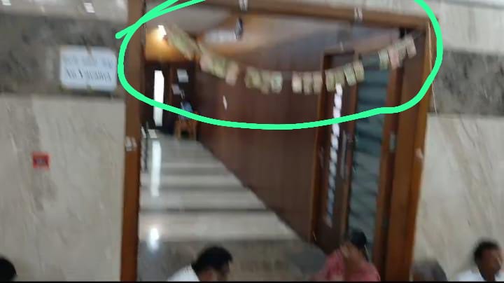 ಮೈಸೂರು: ಕೆಎಸ್ಒಯು ಕುಲಸಚಿವರ ಕಚೇರಿ ಬಾಗಿಲ ಮುಂದೆ ಗರಿ ಗರಿ ನೋಟುಗಳ ತೋರಣ ರಾರಾಜಿಸುತ್ತಿದೆ.