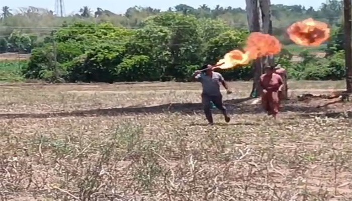 ಪೊಲೀಸ್ ಸಿಬ್ಬಂದಿಗಳಿದ್ದರೂ ಕೇರ್ ಮಾಡದೆ ಆವಾಜ್ ಹಾಕಿದ್ದಲ್ಲದೆ ಸೀಮೆಣ್ಣೆ ಕುಡಿದು ಬೆಂಕಿ ಉಗುಳಿ ಬೆದರಿಕೆ ಹಾಕಿದ್ದಾನೆ.