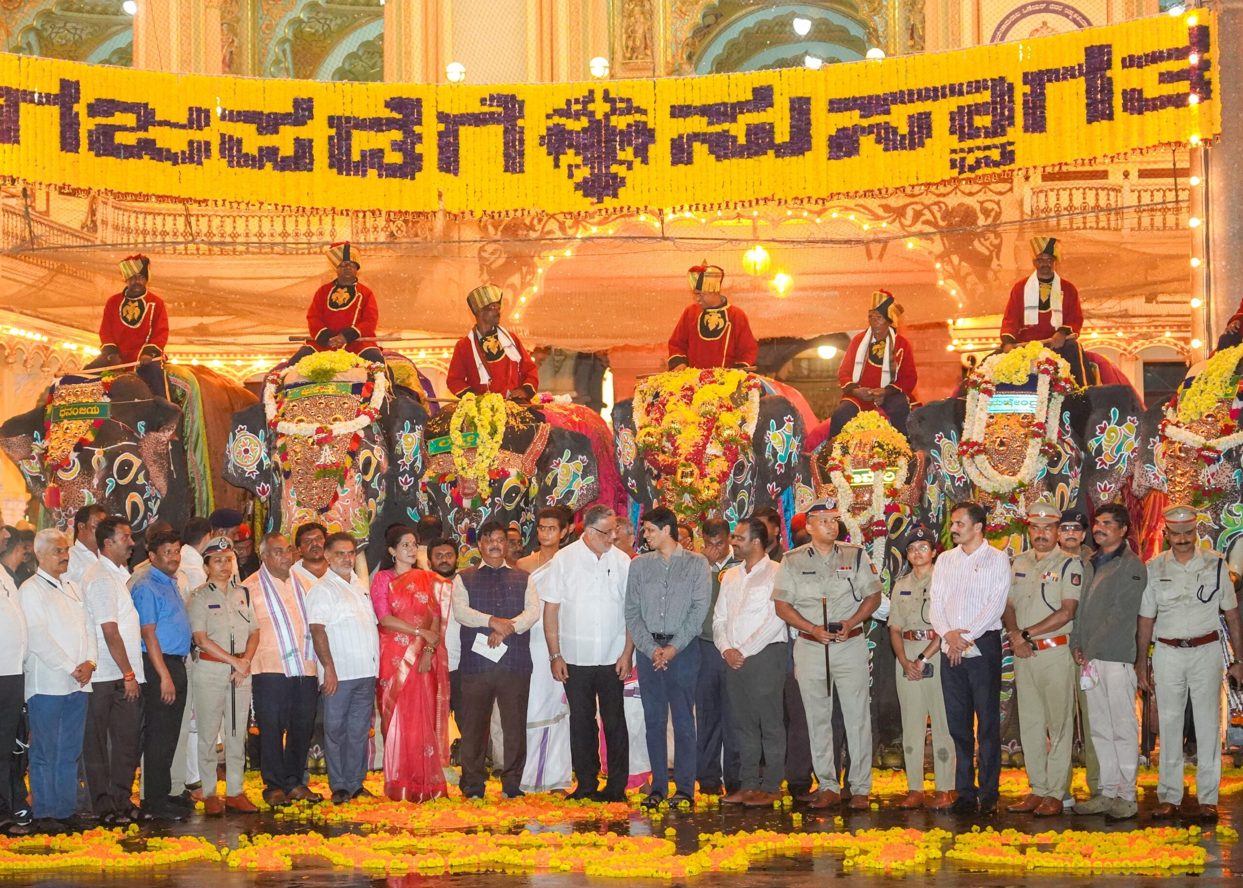 ಮೈಸೂರು ಜಿಲ್ಲಾ ಉಸ್ತುವಾರಿ ಸಚಿವ ಡಾ.ಹೆಚ್.ಸಿ. ಮಹದೇವಪ್ಪ ಅವರು ಗಜಪಡೆಯನ್ನು ಅರಮನೆಯ ಪೂರ್ವ ದಿಕ್ಕಿನಲ್ಲಿರುವ ಜಯಮಾರ್ತಾಂಡ ದ್ವಾರದಲ್ಲಿ ಅಂಬಾವಿಲಾಸ ಅರಮನೆಗೆ ಸ್ವಾಗತಿಸಿದರು.