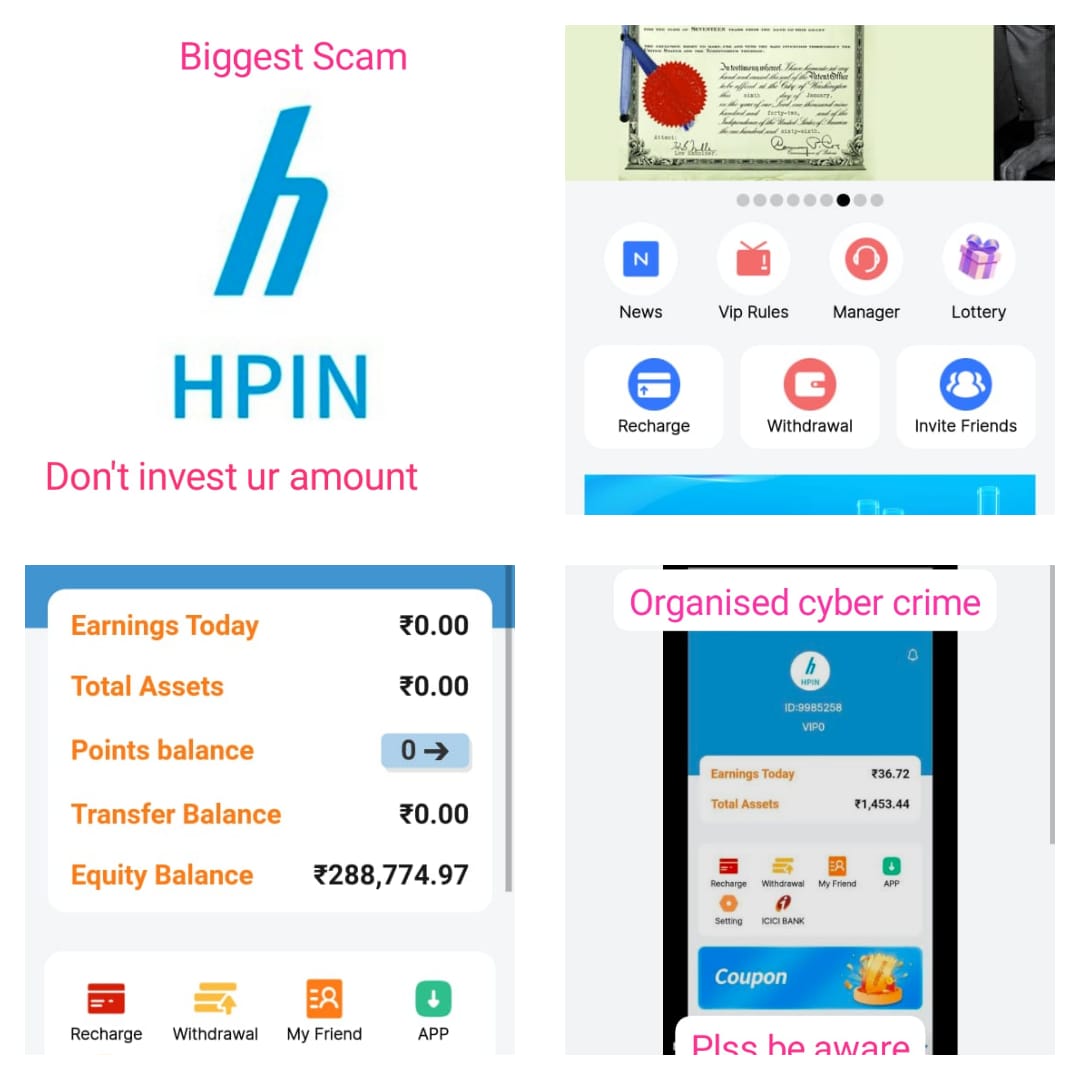 ಚಾಮರಾಜನಗರ: ನಗರದ ವ್ಯಕ್ತಿಯೊಬ್ಬರು HPIN , IPO ಆ್ಯಪ್ ನಲ್ಲಿ ಹಣಕಾಸು ಚೈನ್ ಲಿಂಕ್ ನ ಆನ್ ಲೈನ್ ವಂಚನೆಗೆ ಒಳಗಾಗಿದ್ದಾರೆ.