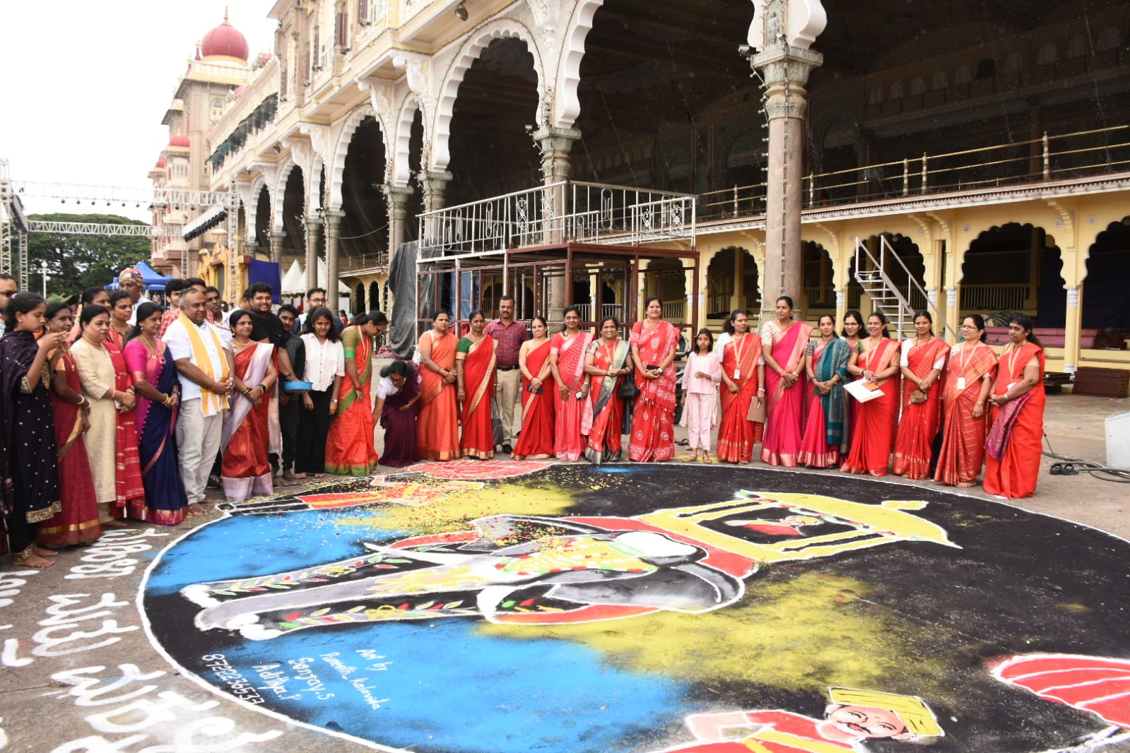 ಮೈಸೂರು ದಸರಾ ಮಹೋತ್ಸವದ ಅಂಗವಾಗಿ ಮಹಿಳಾ ಮತ್ತು ಮಕ್ಕಳ ಇಲಾಖೆ ಮತ್ತು ಮಹಿಳಾ ದಸರಾ ಉಪಸಮಿತಿ ವತಿಯಿಂದ ಅಂಬಾ ವಿಲಾಸ ಅರಮನೆ ಮುಂಭಾಗ ಆಯೋಜಿಸಲಾಗಿದ್ದ ರಂಗೋಲಿ ಸ್ಪರ್ಧೆಯಲ್ಲಿ ಮೂಡಿಬಂದ ರಂಗೋಲಿಗಳಿವು