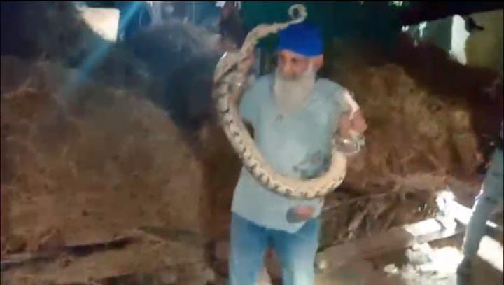 ಮೈಸೂರು: ಹುಲ್ಲಿನ ಮೆದೆಯೊಳಗೆ ಅಡಗಿದ್ದ ಭಾರಿ ಗಾತ್ರದ ಹೆಬ್ಬಾವನ್ನ ಉರಗ ತಜ್ಞ ಸ್ನೇಕ್ ಶ್ಯಾಮ್ ರಕ್ಷಿಸಿದ್ದಾರೆ.