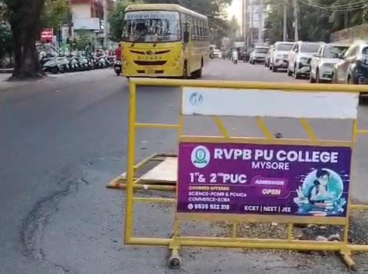 ಮೈಸೂರು: ಮೈಸೂರಿನ ಪ್ರತಿಷ್ಠಿತ ಕಾಳಿದಾಸ ರಸ್ತೆ ಮಧ್ಯಭಾಗದಲ್ಲಿ ಮ್ಯಾನ್ ಹೋಲ್ ಕುಸಿದು ಜನರುಗೆ,ವಾಹನ ಸವಾರರಿಗೆ ತೀವ್ರ ತೊಂದರೆಯಾಗಿದೆ.