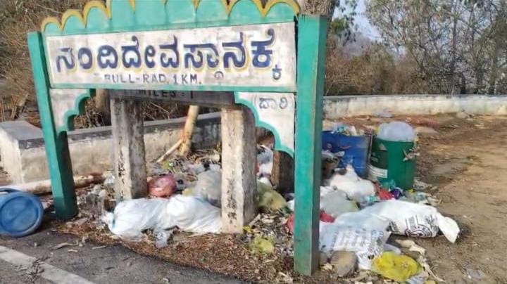 ಚಾಮುಂಡಿ ಬೆಟ್ಟದಾದ್ಯಂತ ಹೆಜ್ಜೆ ಹೆಜ್ಜೆಗೂ ಪ್ಲಾಸ್ಟಿಕ್ ರಾಶಿ ಕಂಡು ಬರುತ್ತಿದೆ.